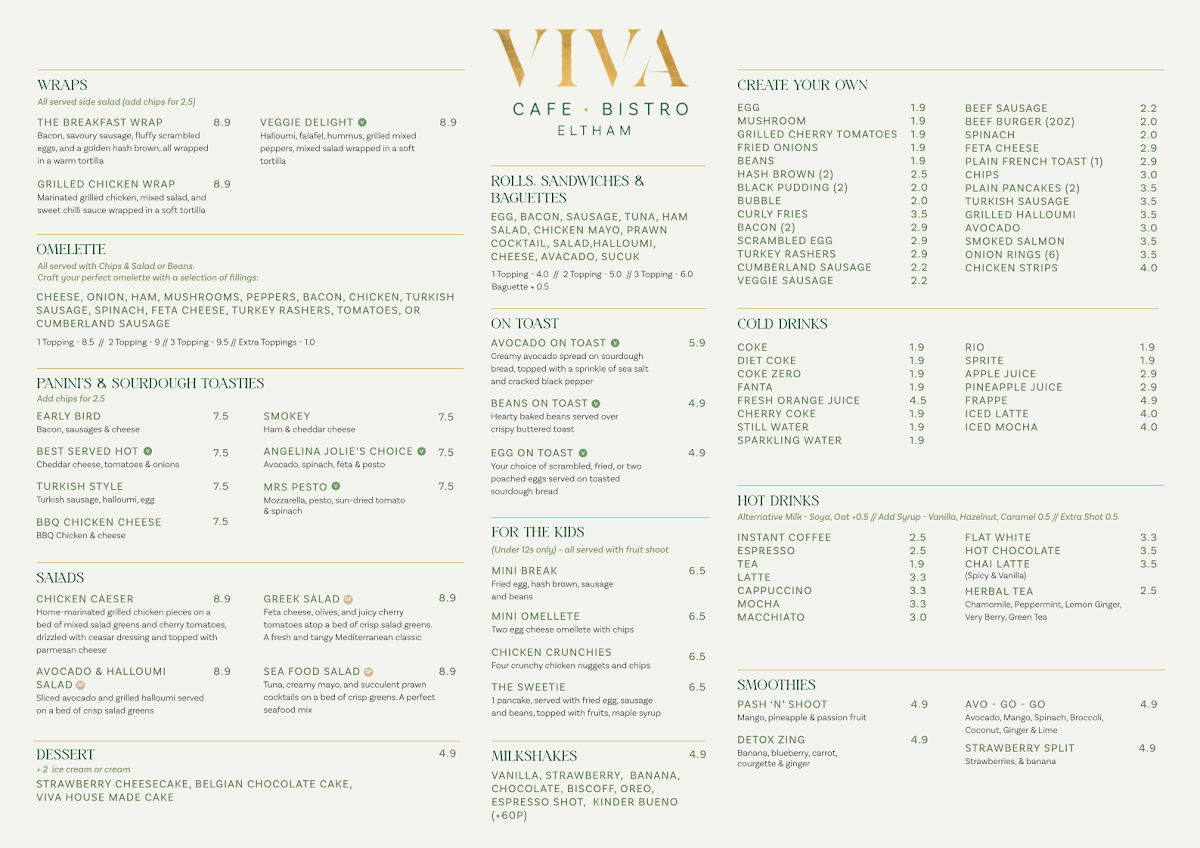 Introducing the Menu at Viva Cafe Bistro Eltham